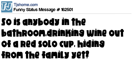 X says so is anybody in the bathroom,drinking wine out of a red solo cup, hiding from the family yet?