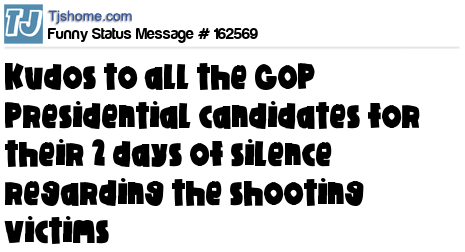 X says Kudos to all the GOP Presidential candidates for their 2 days of silence regarding the shooting victims
