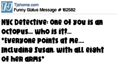 X says NYC Detective: One of you is an octopus,,,, who is it?... *Everyone points at me.... Including Susan, with all eight of her arms*