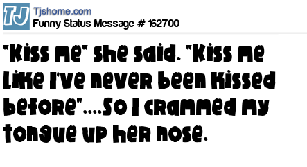 X says "Kiss me" she said. "Kiss me like I've never been kissed before"....So I crammed my tongue up her nose.