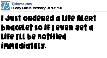 X says I just ordered a Life Alert bracelet so if I ever get a life I'll be notified immediately.