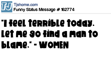 X says "I feel terrible today. Let me go find a man to blame." - WOMEN