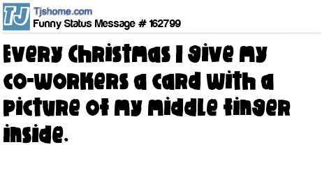 X says Every Christmas I give my co-workers a card with a picture of my middle finger inside.