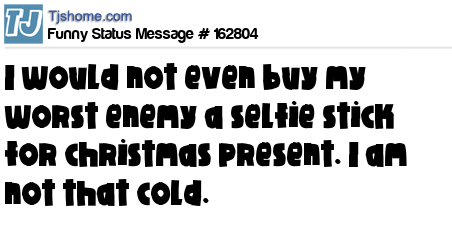 X says I would not even buy my worst enemy a selfie stick for christmas present. I am not that cold.