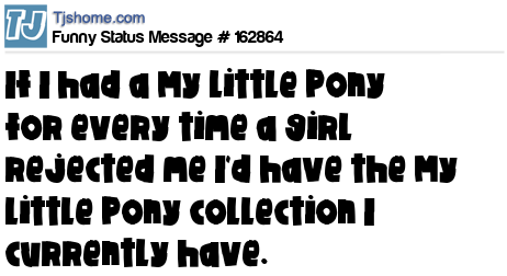 X says If I had a My Little Pony for every time a girl rejected me I'd have the My Little Pony collection I currently have.