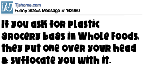 X says If you ask for plastic grocery bags in Whole Foods, they put one over your head & suffocate you with it.