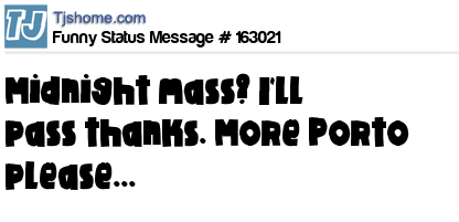 X says Midnight mass? I'll pass thanks. More Porto please...