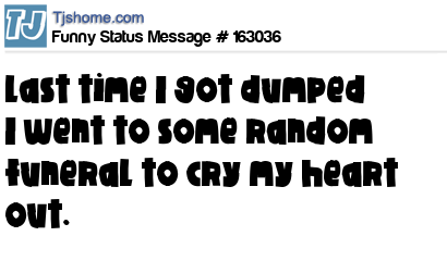 X says Last time I got dumped I went to some random funeral to cry my heart out.