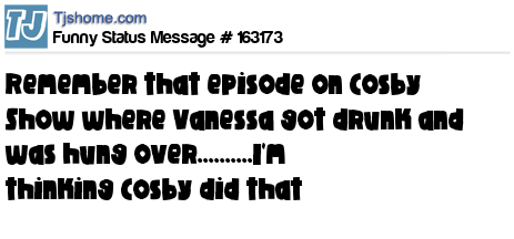 X says Remember that episode on Cosby Show where Vanessa got drunk and was hung over..........I'm thinking Cosby did that