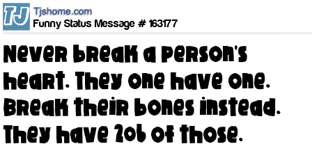 - # 178269 Don't break anybody's heart; they have only one. Break their bones instead; they have 206.