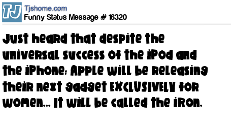 X has just heard that despite the universal success of the iPod and the iPhone; Apple will be releasing their next gadget EXCLUSIVELY for women... It will be called the iRon.
