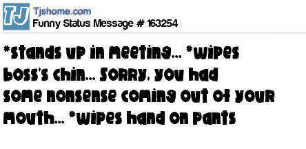 X says *stands up in meeting... *wipes boss's chin... Sorry, you had some nonsense coming out of your mouth... *wipes hand on pants