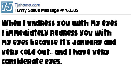 X says When I undress you with my eyes I immediately redress you with my eyes because it's January and very cold out.. and I have very considerate eyes.
