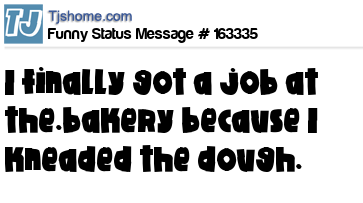 X  I finally got a job at the.bakery because I kneaded the dough.