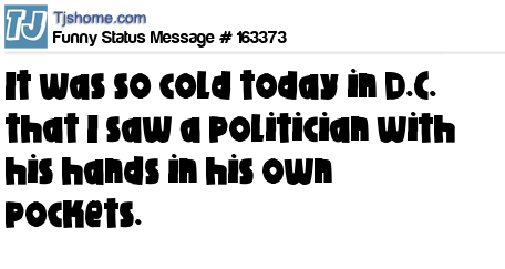 X says It was so cold today in D.C. that I saw a politician with his hands in his own pockets. 😂😳