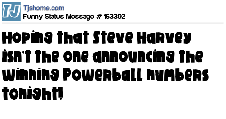 X is Hoping that Steve Harvey isn't the one announcing the winning Powerball numbers tonight!