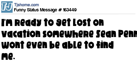 X I'm ready to get lost on vacation somewhere Sean Penn wont even be able to find me.