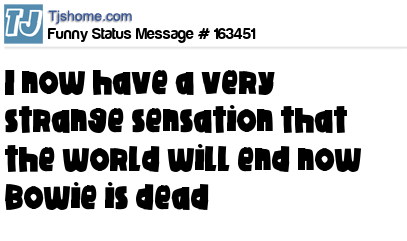 X  I now have a very strange sensation that the world will end now Bowie is dead