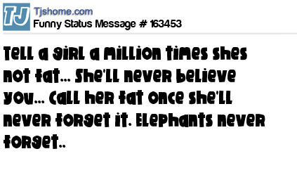 X says Tell a girl a million times shes not fat... She'll never believe you... Call her fat once she'll never forget it. Elephants never forget..