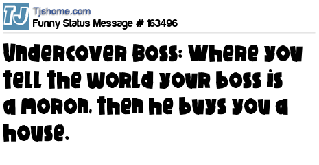 X says Undercover Boss: Where you tell the world your boss is a moron, then he buys you a house.