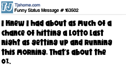 X says I knew I had about as much of a chance of hitting a lotto last night as getting up and running this morning. That's about the 0%.