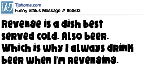 X says Revenge is a dish best served cold. Also beer. Which is why I always drink beer when I'm revenging.