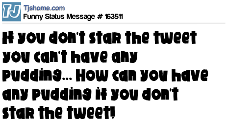 X says If you don't star the tweet you can't have any pudding... How can you have any pudding if you don't star the tweet!