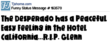 X The Desperado has a Peaceful Easy Feeling in the Hotel California...R.I.P. Glenn