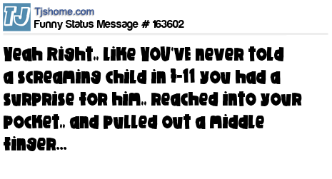 X says Yeah Right,, like YOU'VE never told a screaming child in 7-11 you had a surprise for him,, reached into your pocket,, and pulled out a middle finger...