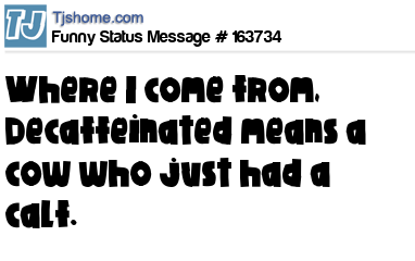 X says Where I come from, Decaffeinated means a cow who just had a calf.