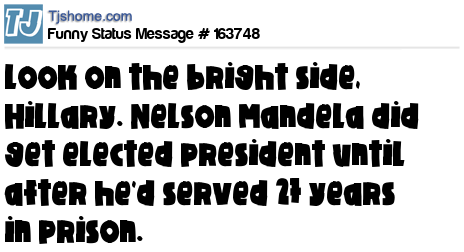 X says Look on the bright side, Hillary. Nelson Mandela did get elected president until after he'd served 27 years in prison.