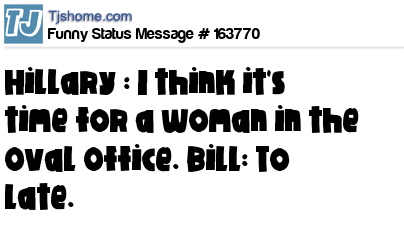X says Hillary : I think it's time for a woman in the Oval Office. Bill: To late.