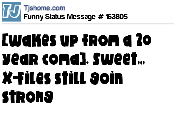 X says [wakes up from a 20 year coma]. Sweet,,, X-Files still goin strong