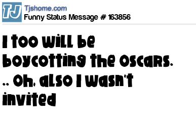 X says I too will be boycotting the Oscars. .. Oh, also I wasn't invited