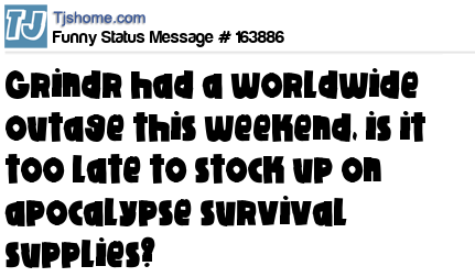 X says Grindr had a worldwide outage this weekend, is it too late to stock up on apocalypse survival supplies?