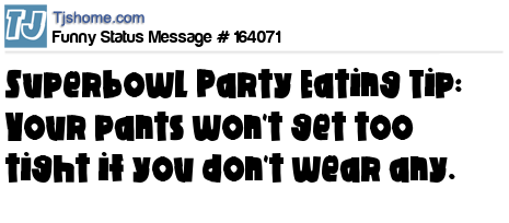 X says Superbowl Party Eating Tip: Your pants won't get too tight if you don't wear any.