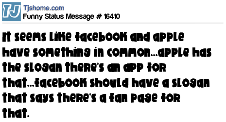 X it seems like facebook and apple have something in common...apple has the slogan there's an app for that...facebook should have a slogan that says there's a fan page for that.