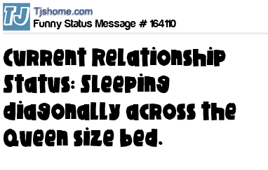 X says Current Relationship Status: Sleeping diagonally across the Queen size bed.