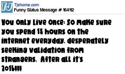 - # 206150 You only live once, so make sure you spend 16 hours a day on the internet desperately seeking validation from complete strangers.