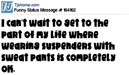 X says I can't wait to get to the part of my life where wearing suspenders with sweat pants is completely ok.