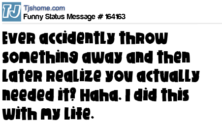 X says Ever accidently throw something away and then later realize you actually needed it? Haha. I did this with my life.