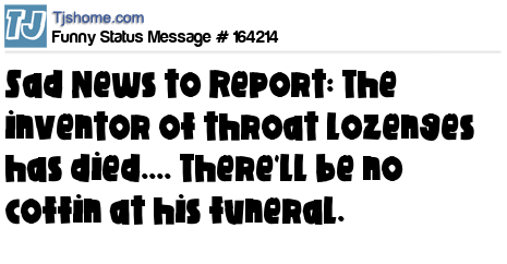 X says Sad News to Report: The inventor of throat lozenges has died.... There'll be no coffin at his funeral.