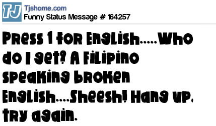 X says Press 1 for English.....Who do I get? A Filipino speaking broken English....Sheesh! Hang up, try again.