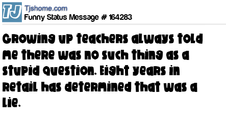 X says Growing up teachers always told me there was no such thing as a stupid question. Eight years in retail has determined that was a lie.