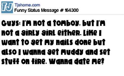 X says Guys: I'm not a tomboy, but I'm not a girly girl either. Like I want to get my nails done but also I wanna get muddy and set stuff on fire. Wanna date me?