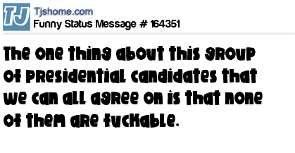 X says The one thing about this group of presidential candidates that we can all agree on is that none of them are fuckable.