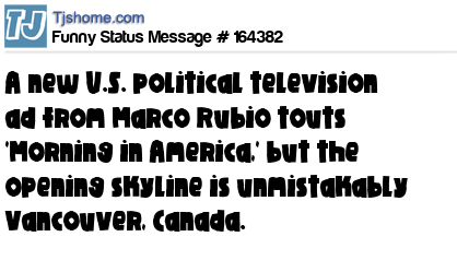 X says A new U.S. political television ad from Marco Rubio touts 'Morning in America,' but the opening skyline is unmistakably Vancouver, Canada.