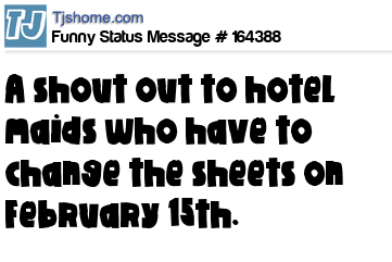 X says A shout out to hotel maids who have to change the sheets on February 15th.