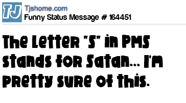 - # 95318 I just told my child that PMS stands for 'Prepare to Meet Satan.'