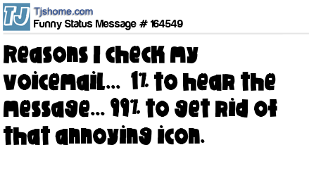 - # 93407 Reasons I check my voicemail: 1% to hear the message. 99% to get rid of that annoying icon.
